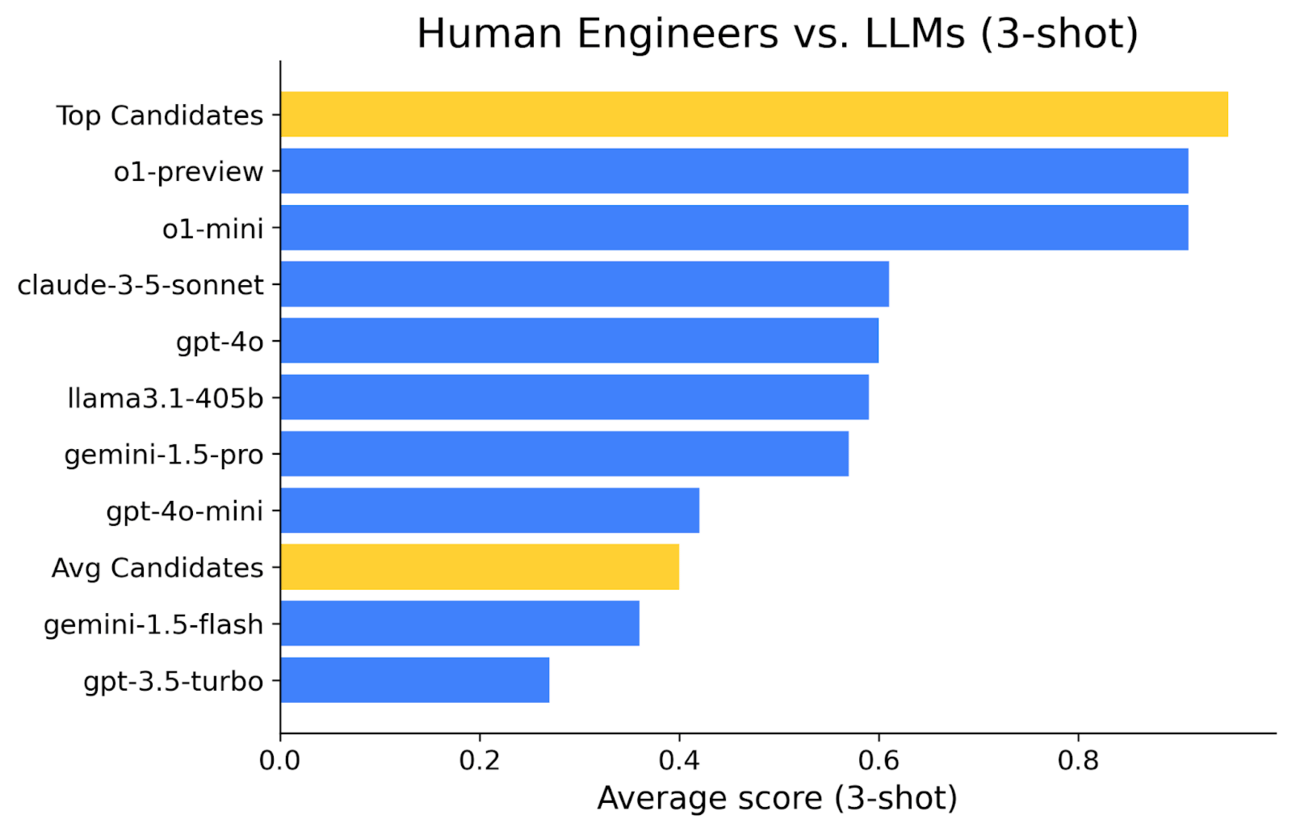 Advanced AI (o1-preview, o1-mini) outperforms average human engineers