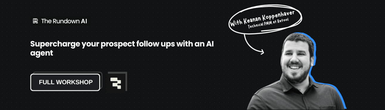Reminder: Our next live workshop is today at 4 PM EST with Retool — join and learn tips on how to supercharge and automate your prospect follow-ups with AI agents. RSVP here.