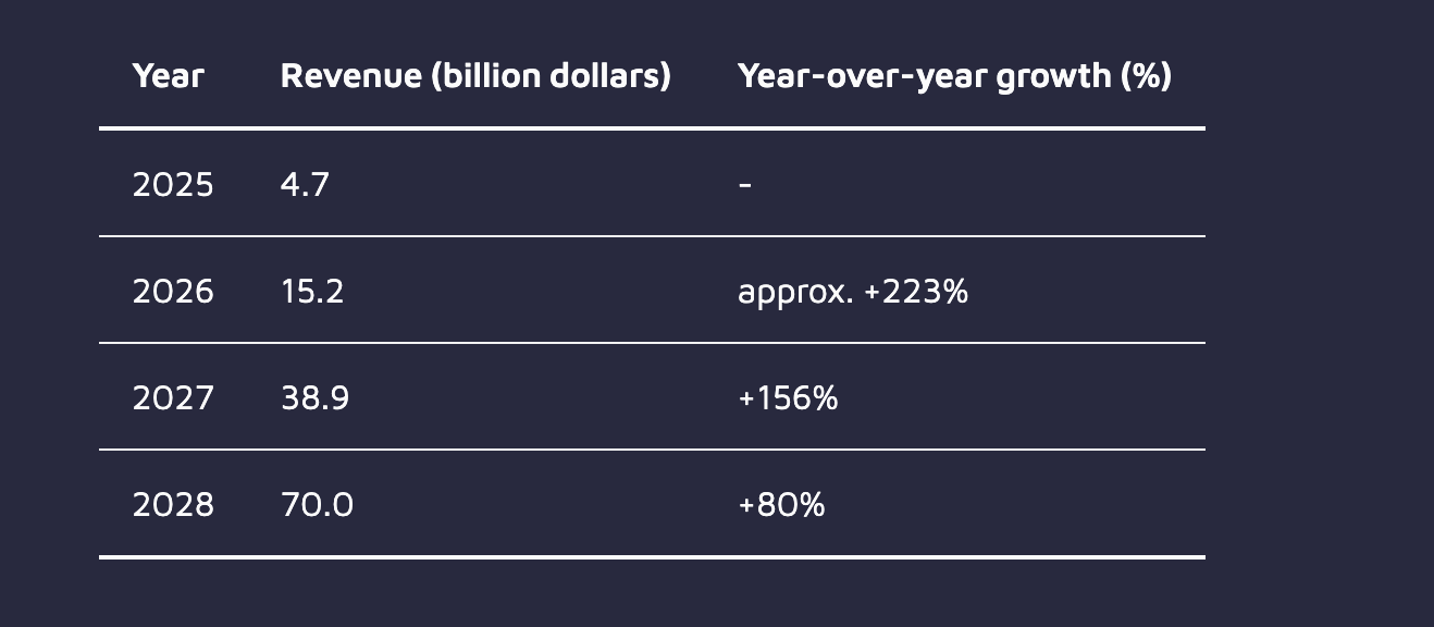 Revenue would wish to greater than double in 2026 and 2027, with around 80% growth projected for 2028. | Image: The Decoder