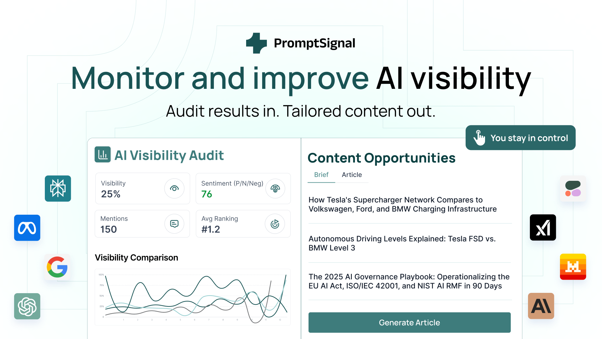 The Rundown: PromptSignal is an AI visibility platform that shows how often you appear in AI answers and why. It turns performance data into tailored article briefs, then generates full drafts you possibly can edit or directly publish.