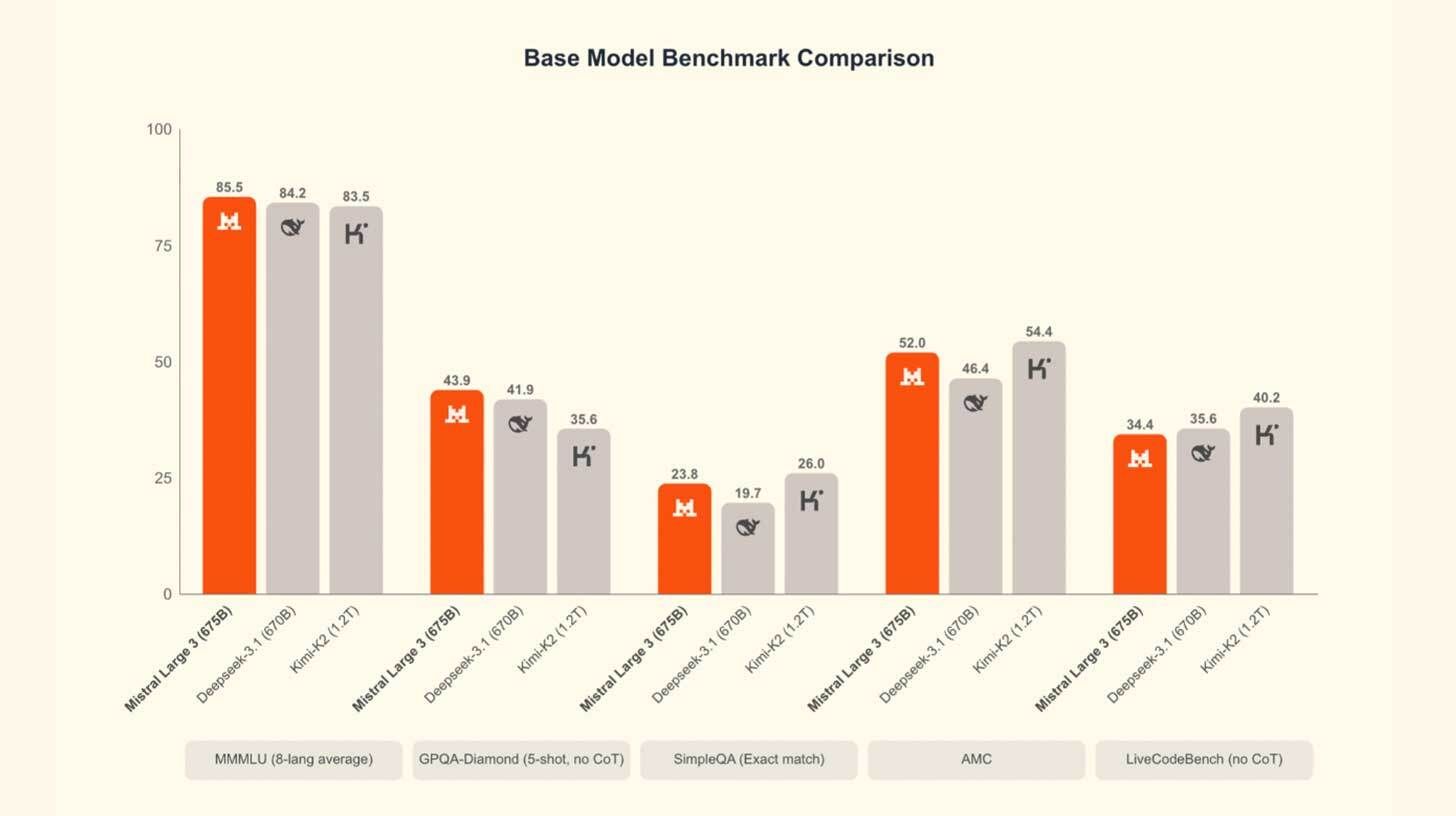 Large 3 is competitive with non-reasoning models like Qwen3, Kimi-2, and DeepSeek V3.1, while also featuring multimodal and multilingual capabilities.