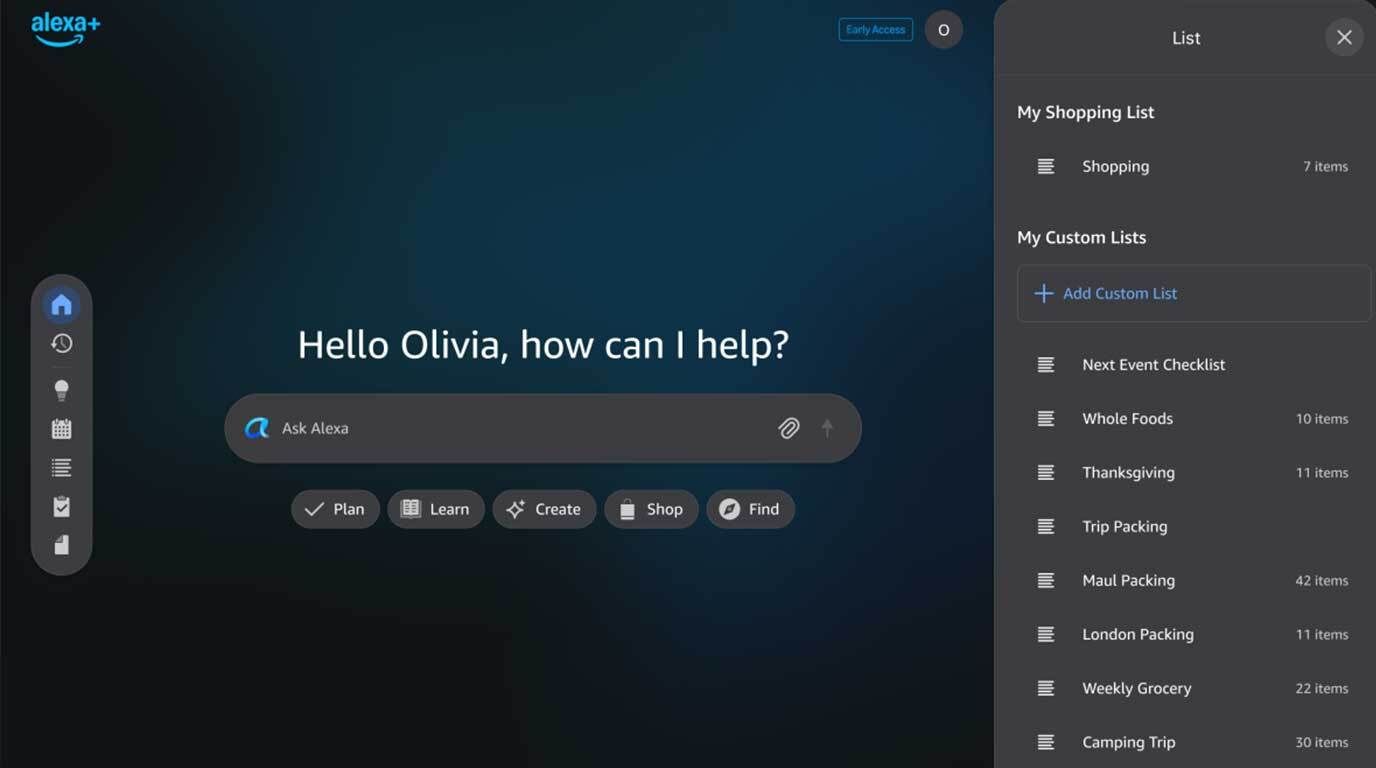 Early Access users can access Alexa+ through any browser for research, writing, and planning tasks, marking a first-time extension beyond devices.