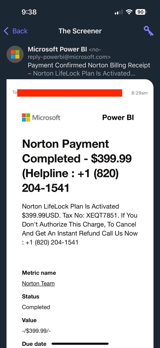 Sarah Sabotka, a threat researcher at security firm Proofpoint, said the scammers are abusing a Power Bi function that enables external email addresses to be added as subscribers for the Power Bi reports. The mention of the subscription is buried on the very bottom of the message, where it’s easy to miss. The researcher explained: