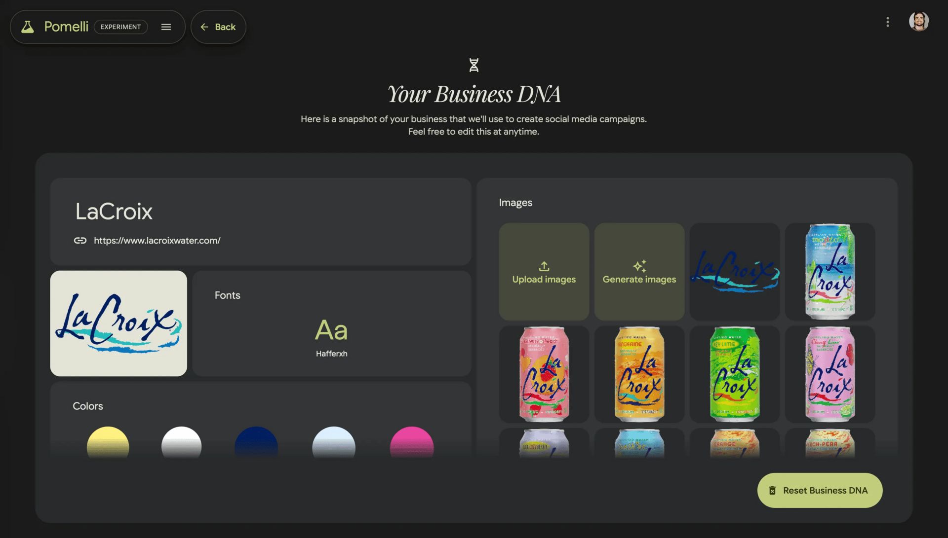 2. First is Pomelli. Copy your brand’s website URL and paste it into Pomelli. After ~5 minutes, you’ll get bespoke ad campaigns with image and video assets.